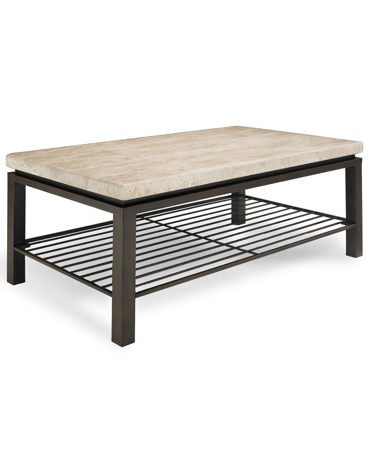 . Stamper faux stone end table. Very sturdy side table topped with a thick travertine stone slab and featuring a dappled bronze metal base in a dark satin finish. Bernhardt Tempo Travertine Top Rectangular Coffee Table Reviews Furniture Macy S.